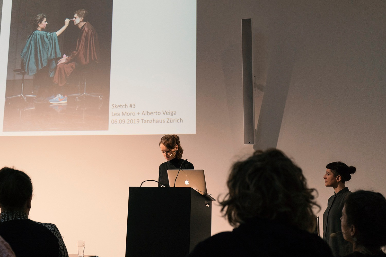 At this conference, Lea Moro, Alexandra Hennig and Mona De Weerdt presented the serial performance Sketch of Togetherness, a project that makes the encounter the focus of artistic research, addressing the production of meaning / sense / sensuality, touching / being touched as well as the specific qualities of physical co-presence in interpersonal relationships. It implicitly deals with what experiential and physical knowledge is produced by different professional activities and refers to the sensual materiality and socio-cultural situatedness of knowledge. Sketch of Togetherness additionally generates choreographic and technical production knowledge about new artistic formats. In their lecture, Mona De Weerdt, Lea Moro and Alexandra Hennig asked which materials, physical and sensual qualities of an encounter can be observed. Can an encounter be choreographed and how can unpredictable interpersonal dynamics become artistically productive?