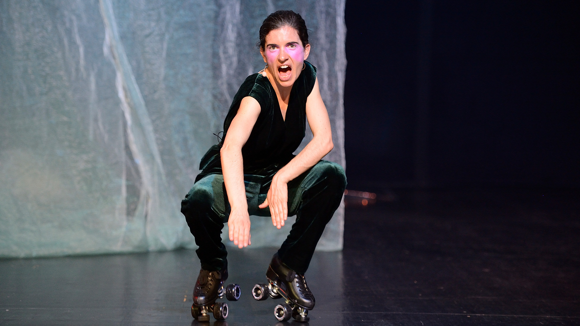 Lea Moro performs the big gesture of musicals with simple abstraction. She embarks on an extravagant path alone and shares her vulnerability with the audience. She moves through the empty stage space on roller skates and so develops a powerful yet fragile language of singing and movement. The standard ways of directing musicals, such as the use of emotionality, stage effects, virtuoso numbers and catchy music are all transferred to a single solo piece. Set to the sound of Vivaldi’s The Four Seasons (1725), Lea Moro sings her way through her musical.