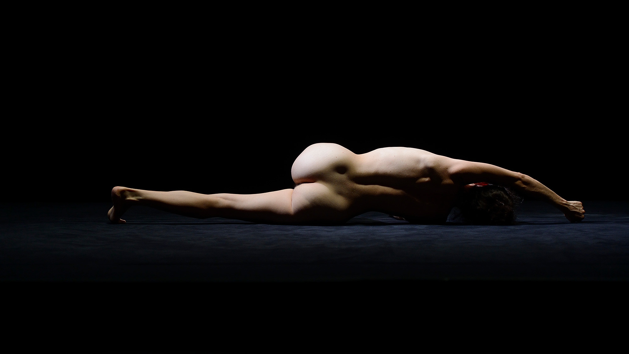 Zergliedert und wieder neu organisiert, wird der Körper zur bloßen Materialität — zum Medium energetischer Potentiale und Transformationen. Die neue Arbeit entfaltet sich an der Schnittstelle von Bildender Kunst und Tanz, zwischen Performance und Installation, sinnlicher Erfahrung und Abstraktion und spielt mit Analogien und Form-Aspekten des Kubismus, sowie Picassos Zeichnungen aus einem Strich. Gemeinsam begeben sich Schad und Moro in Konstellationen des Formens. Die Dis-Figurationen lassen den Körper zur Bühne werden: zum Raum, Ort und Material, welches das Subjekt der Betrachtung darstellt.